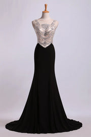 Party Dresses Sheath/Column Spandex With Beads Sweep Train