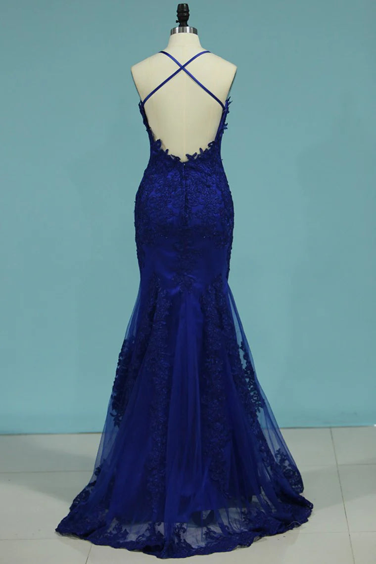 Party Dresses Spaghetti Straps Mermaid Tulle With Aplliques Open Back