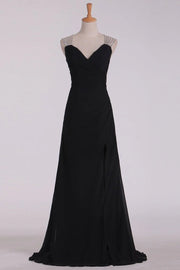 Party Dresses Straps Sheath Chiffon With Beads And Ruffles