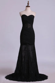 Party Dresses Sweetheart Column Pleated Bodice Chiffon And Lace