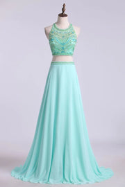 Party Dresses Two Pieces Halter A Line Chiffon Beaded Bodice