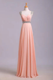 Party Dresses With Cap Sleeves A-Line V-Neck Floor-Length Chiffon Zipper Back