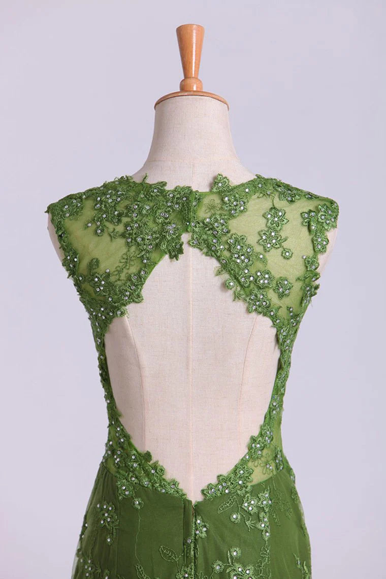 Scoop Column Party Dresses Tulle With Slit And Applique Sweep Train – Buyishang Dresses index