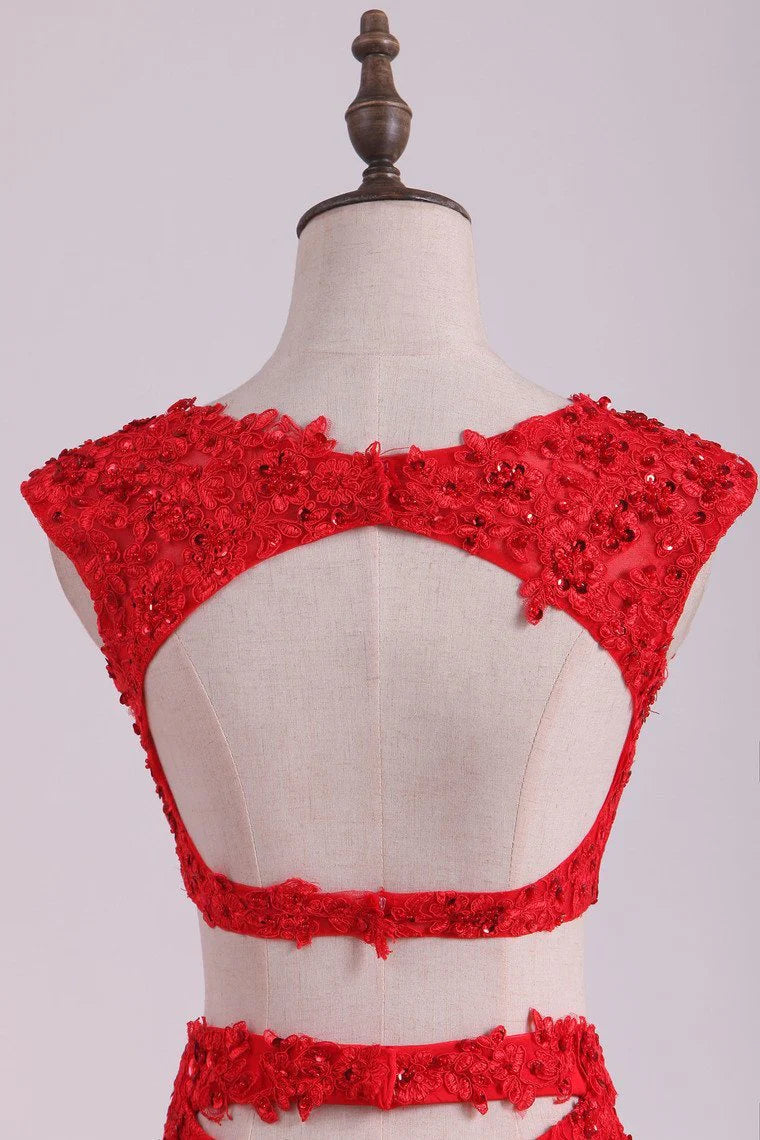 Scoop Two-Piece With Applique And Beads Spandex Sheath Party Dresses