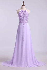 Spaghetti Straps Beaded Bodice A-Line Chiffon Party Dresses