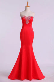 Sweetheart Beaded Neckline Satin Party Dress Mermaid Sweep Train