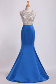 Two-Tone Bateau Mermaid Party Dresses Beaded Bodice Satin And Tulle Sweep Train