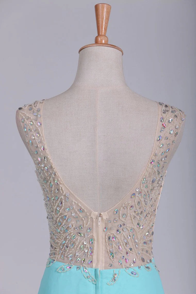 V Neck Beaded Bodice A Line Party Dresses Chiffon & Tulle Sweep Train – Buyishang Dresses index