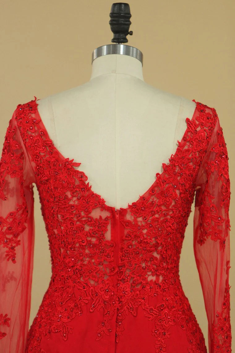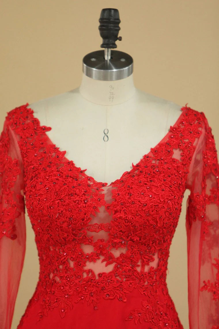 V Neck Mermaid Party Dresses Chiffon With Applique