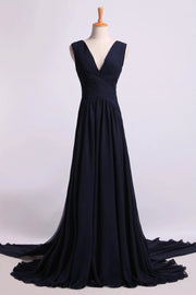 V-Neck Party Dress A-Line With Ruffles Court Train Chiffon - US 2 / UK 6 / EU 32