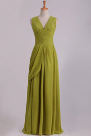V-Neck Party Dresses A-Line Floor-Length Chiffon With Slit