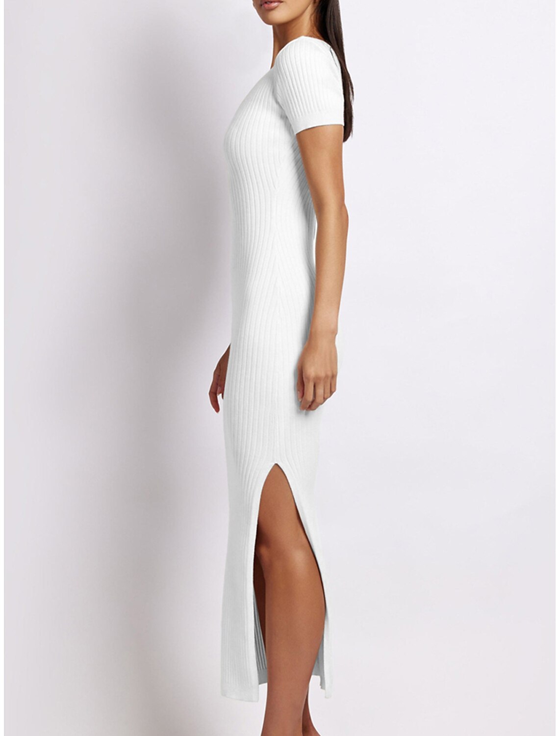 Women's Party Dress Cocktail Dress Wedding Guest Dress Midi Dress Black White Wine Short Sleeve Plain Split Summer Spring Fall V Neck Party Wedding Guest Vacation