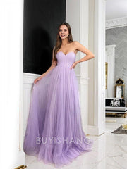Elegant A-Line/Princess Tulle Sweetheart Sleeveless Sweep/Brush Train Corset Dresses Prom Dress