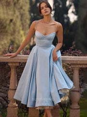 Spaghetti Strap Sweetheart Neck Midi prom dress. Occasions: Prom, black tie events, formal weddings, and upscale parties.