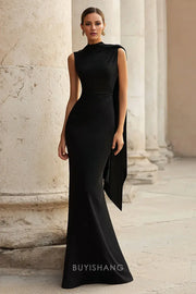 Step into modern sophistication with Buyishang's high neck asymmetric drape sleeveless satin mermaid maxi dress. The structured high neckline (paired with a dramatic one-shoulder drape detail) and lustrous black satin fabric highlight your silhouette elegantly, while the ruched waist and flowing mermaid skirt add layers of refinement. The classic black hue creates a stunning, timeless fit—ideal for black-tie events, formal galas, or upscale dinners. The smooth satin material and minimalist yet bold design further elevate its appeal, ensuring you exude poise at any polished occasion.
