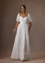 Off - Shoulder Lace Puff Sleeve prom dress. Occasions: Prom, black tie events, formal weddings, and upscale parties.