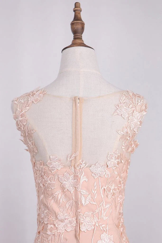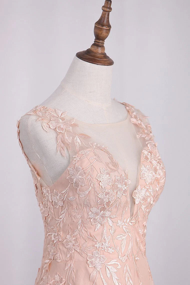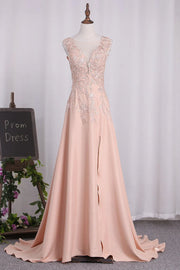 A Line Satin Straps Party Dresses With Slit Sweep Train