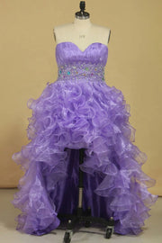 Asymmetrical Party Dresses Sweetheart Organza With Beads And Ruffles A Line