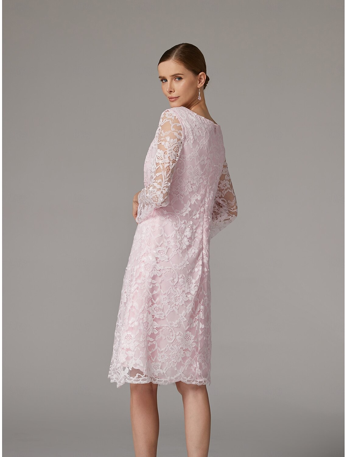 Buyishang Two Piece A-Line Dress Suit Mother of the Bride Dress Elegant Plus Size Jewel Neck Tea Length Chiffon Lace Short Sleeve Jacket Dresses with Solid Color - US 2 / UK 6 / EU 32