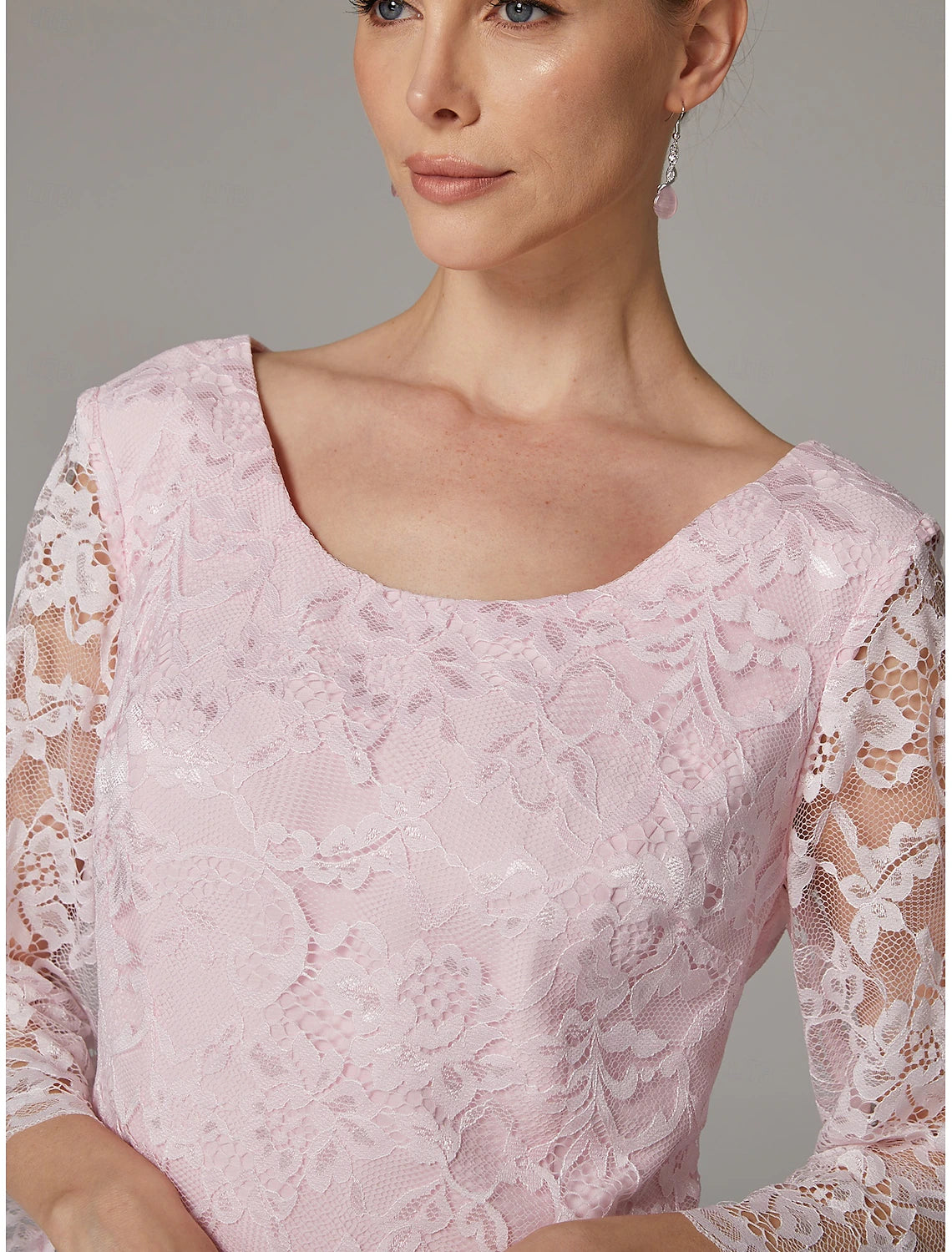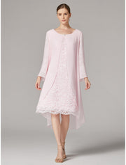 Buyishang Two Piece A-Line Dress Suit Mother of the Bride Dress Elegant Plus Size Jewel Neck Tea Length Chiffon Lace Short Sleeve Jacket Dresses with Solid Color