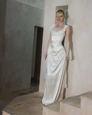Elegant A-Line Cowl Neck Satin Ivory Floor-Length Wedding Dress