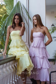 Elegant A-Line Strapless Tiered Ankle-Length Back Zip prom dress - Lemon / US 2 / UK 6 / EU 32