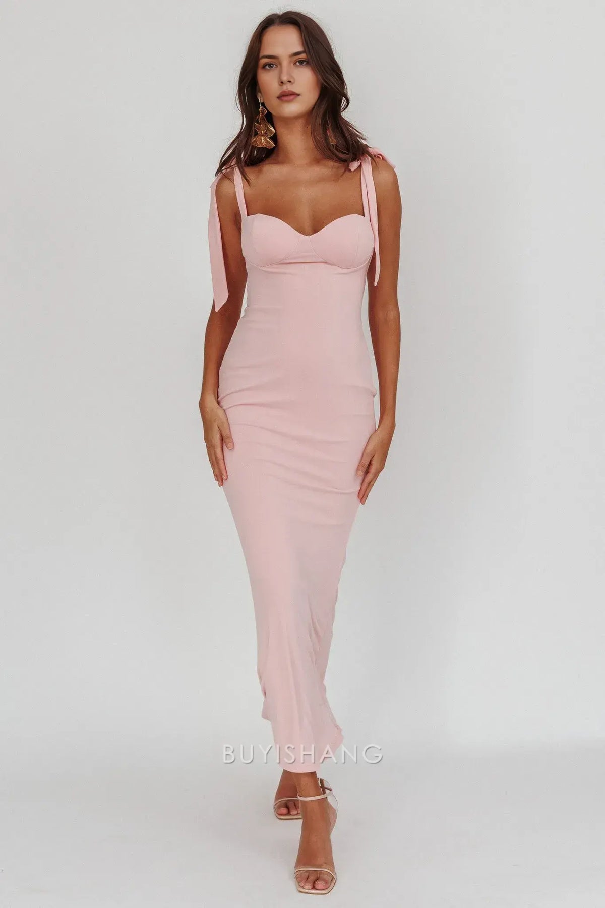 Elevate your evening style with Buyishang's bow strap sweetheart neck maxi dress. it features charming bow details on the straps, a flattering sweetheart neckline, and a form - fitting silhouette. Perfect for parties, dinners, or special occasions, the dress combines elegance and femininity seamlessly.