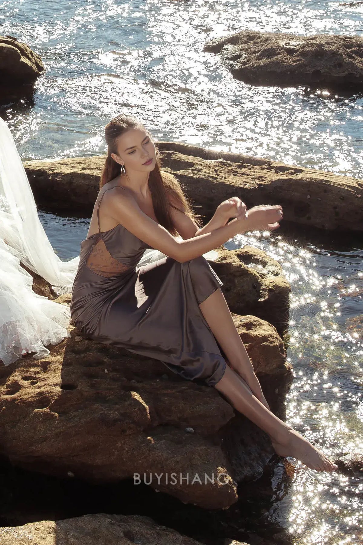 Elevate your evening look with Buyishang's satin maxi dress. Featuring a cowl neck, delicate spaghetti straps, and a stylish lace cutout detail, it combines elegance and allure. The open back adds a touch of drama, making it perfect for formal events, galas, or special nights out.