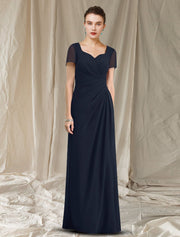 Sheath / Column Mother of the Bride Dress Simple Elegant V Neck Floor Length Chiffon Short Sleeve with Ruched - US 2 / UK 6 / EU 32
